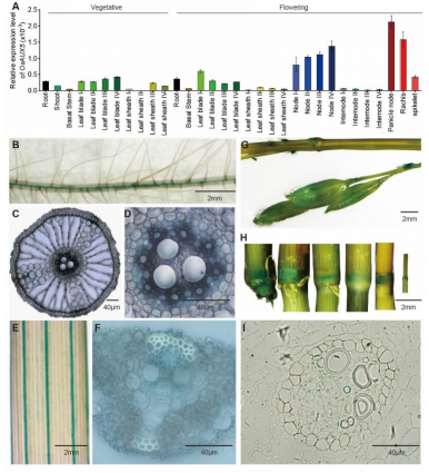 进一步研究显示,OsAUX5主要在根、叶片、穗和节 (包括节I-V和穗节)的维管组织中表达,参与根中中性氨基酸的吸收以及叶片向种子中氨基酸的运输过程 (图2)。