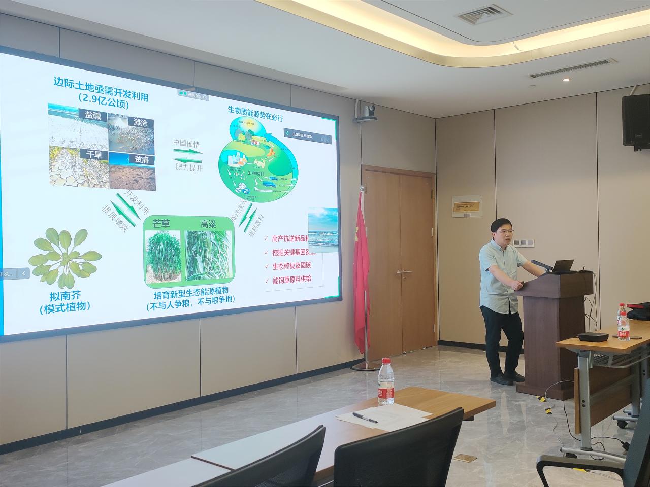 李胜军研究员分别从植物miRNA介导的基因表达调控机制、高梁关键性状基因挖掘与遗传改良、芒草关键性状基因挖掘与遗传改良三个方面的工作展开了介绍。揭示出SMA1基因调控miRNA合成的新功能,为利用生物技术的手段改善农艺性状提供理论基础。生动的阐明了MAC复合体参与植物的生长发育、胁迫响应、pre-mRNA可变剪切和miRNA生物合成等生物学过程。随后,李胜军研究员通过对高粱和芒草关键性状的基因挖掘与遗传改良方面工作的介绍,深入浅出的对EMS化学诱变和重离子辐射诱变创制生物量高且抗逆的高粱种质资源和芒草种质资源进行了分析。