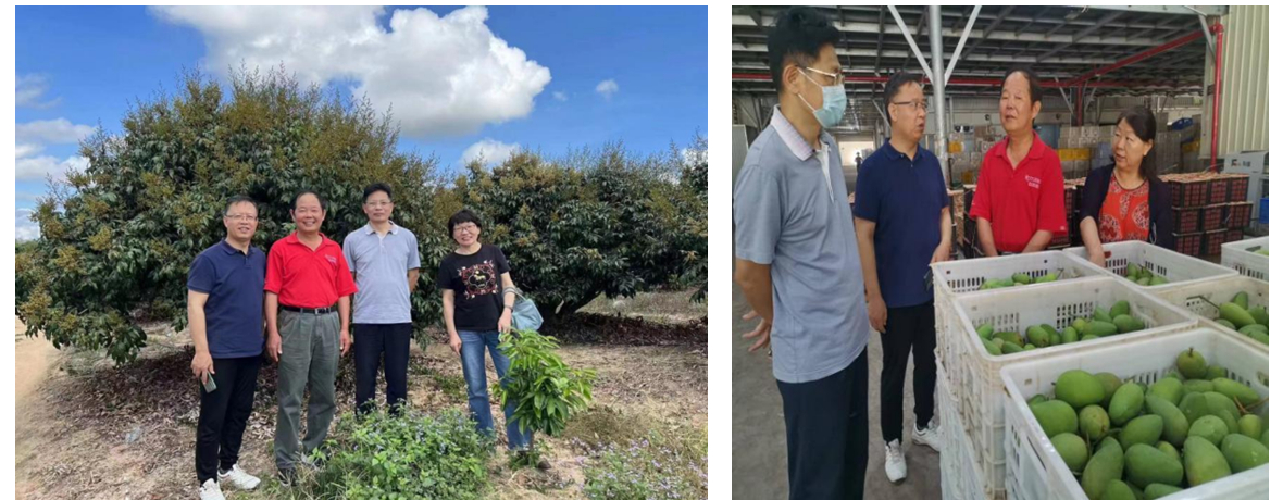 芒果是海南最具特色和优势的热带水果之一。近年来“树上熟”芒果应具有更好的风味品质而受到消费者的青睐。火龙果和葡萄是近年来海南的新型产业,发展潜力巨大。2023年2月8日,原国家基金委罗晶处长一行赴永利集团热带果蔬保鲜技术团队的芒果基地、火龙果基地和葡萄种植基地进行调研。该基地位于海南省陵水县英州镇,属于科技型龙头企业——景乾果业有限公司,结果考察调研,罗处长就海南芒果产业、火龙果产业和葡萄产业发展、采后处理技术、物流运输等各方面提出了建设性的指导意见。