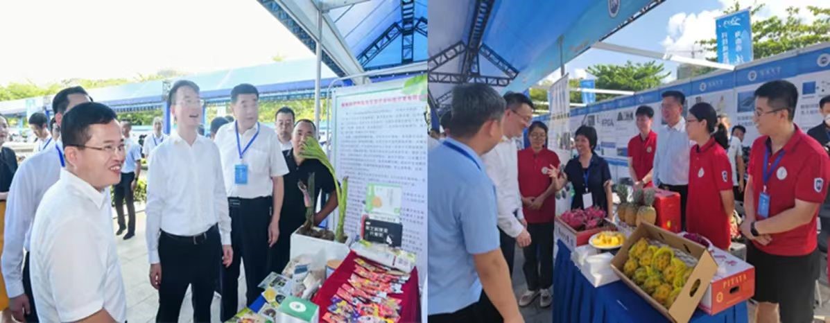 2023年5月19日,我院重要热带作物抗病分子机理与分子育种团队协同热带珍稀名贵树种团队、热带油茶科技创新与产业化应用团队以及帮扶企业海南经济特区强富美农业科技开发有限公司,参加由省科技厅、省委宣传部、省科协、团省委主办,昌江黎族自治县人民政府承办的海南省第十九届科技活动月暨“全国科技工作者日”启动仪式,陈金辉副教授、陈健妙副教授和王健教授向广大群众宣传南繁科学知识;向省政协副主席陈马林、省科技厅光组书记李劲松、乐东县科技局韦庆荣局长等详细介绍海南省农业科技110南部服务中心服务内容;永利集团自主培育的“海大油茶1号”等4个海南油茶良种嫁接苗、组培苗、油茶种植栽培技术和油茶系列产品,以及展示我院系列科研成果和合作指导企业海南经济特区强富美农业科技开发有限公司开发的林下种植魔芋系列产品。永利集团三亚南繁研究院校企合作,促进“产学研用”良好发展得到高度认可和支持。