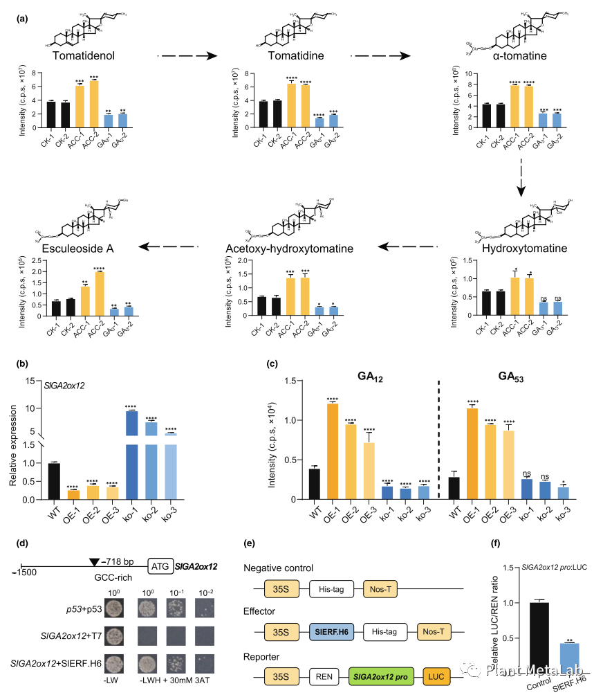 图2. SlERF.H6-SlGA2ox12调控SGA代谢