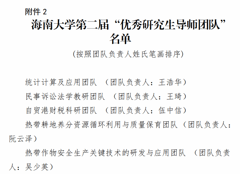 2、热带耕地养分资源循环利用与质量保育团队和热带作物安全生产关键技术研发与应用团队均被评为永利集团第二届“优秀研究生导师团队”