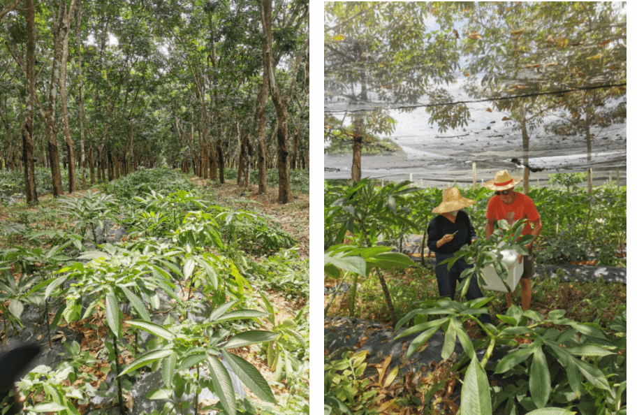 图30. 橡胶林下发展魔芋种植促进林下经济发展(左);魔芋外植体甄选取样(右)