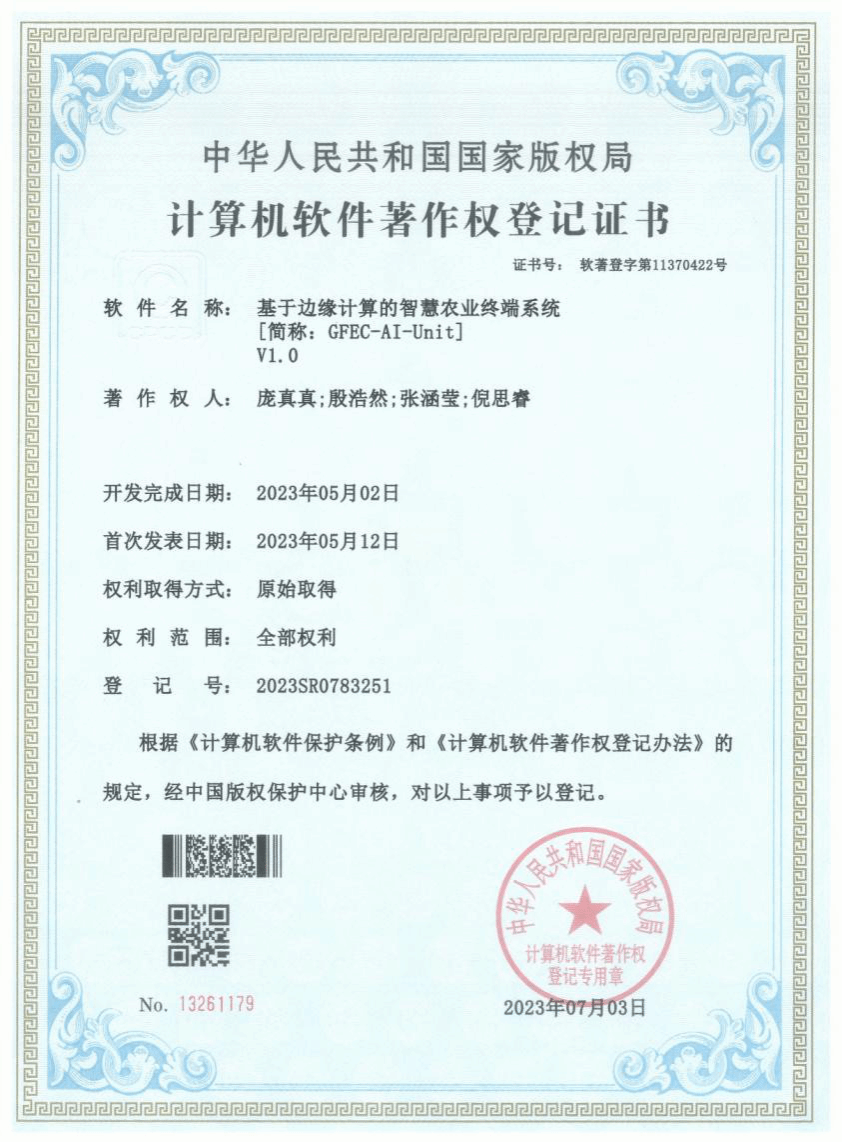 该成果“基于边缘计算的智慧农业终端系统”,属于嵌入式边缘计算软件领域。主要实现了农业现场空气温湿度、土壤温湿度、气体参数、光环境等参量因子的自动化采集(需要与变送器硬件联合使用);基于人工智能驱动的植物生长模型在线预测作物生长状态;提供了GUI交互界面与数据可视化功能。