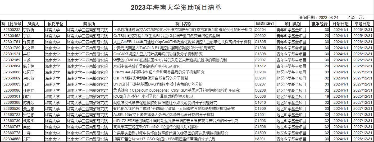 作为服务南繁、热带高效农业的开放创新共享平台,我院教师积极开展科研创新和各类项目申报工作,其中申报2023年国家自然科学基金项目74项,根据国科金发计〔2023〕62号关于2023年国家自然科学基金集中接收申请项目评审结果的通告,我院李雅忻等19名教师申报的科研项目获2023年国家自然科学基金资助,项目申报资助率25.7%,远高于2023年平均资助率16.1%。