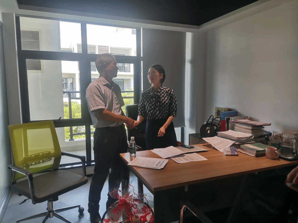随后,黄东益书记还看望了南繁科技文化与战略研究创新团队吕青博士,肯定了她在南繁文化宣传中作出的突出贡献和取得的优异成绩,希望能够继续发挥好先锋带头作用,鼓足干劲、勇于担当,将南繁文化与学院教育工作相互结合,在学院高质量发展中作出更大贡献。吕青博士表示,感谢学院领导对其团队工作的认可,定将继续奋发工作,为学院发展作出自己应有的贡献。