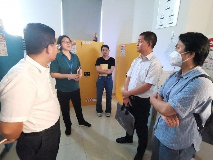 交流环节中,杨副处长和实验室与设备管理处陈秀莲科长与各实验室管理员针对管制化学品的采购与管理及危险废弃物处理中存在的问题进行了交流与探讨。结束后,众人一起到我院危化品暂存间进行查看,杨副处长提出部分意见及建议。