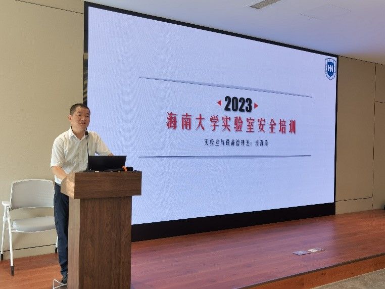 为切实加强实验室管理工作,规范实验室危化品的安全管理,强化入驻师生的安全责任管理,yl9193永利集团(三亚南繁研究院)于2023年10月21日在南繁众创中心910室组织各实验室管理员和学生代表进行实验室安全工作培训。学院邀请了实验室与设备管理处杨海峰副处长为大家作主题讲座,崖州湾科教园管委会党委副书记钟祥涛出席培训活动,分管实验室工作杨小锋副院长主持本次活动。