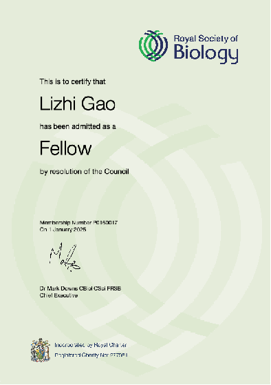 据悉,英国皇家生物学会致力于推动与生命科学相关的教育及学术活动、业界发展及生物科技研发,是全球具有重大影响力的生物学组织之一,汇聚各地出色的科学家和研究人员,其由多个著名专业学会和学术组织共同组成,是英国皇家特许的权威学术组织。英国皇家生物学会主要经国际知名科学家推荐,经会士委员会(Fellow Council)选举,在不同学科领域对生物及生命科学发展作出突出贡献的科学家成为会士(“Fellowship is the most prestigious grade of RSB membership; Fellows of the Royal Society of Biology (RSB) have achieved distinction in the fields of biological research, teaching or the application of biology”)。