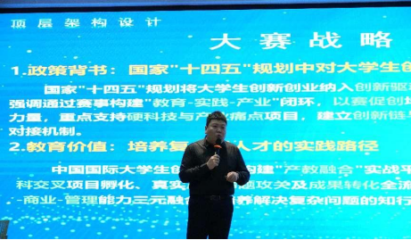 报告以“新质生产力视阈赋能大学生双创智变”为主题,系统解读了国家“十四•五”规划对大学生创新创业的战略定位,强调赛事在构建“教育-实践-产业”闭环中的关键作用。结合2024年赛事,通过分析金奖项目分布领域与评审规则权重模型,提出“选题黄金三角模型”“双螺旋备赛模型”等策略,强调参赛团队需锚定国家战略性新兴产业方向,聚焦硬核技术突破与跨学科融合,构建技术、商业、社会价值的动态平衡。