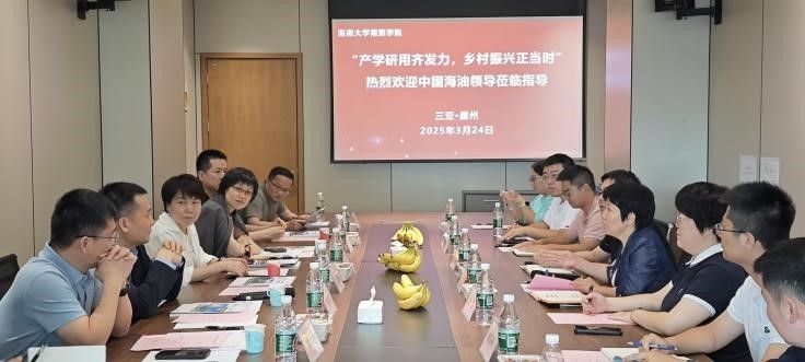 (本站通讯员:黄志伟、汪广栋)为深化校企合作赋能乡村振兴,中国海油化学公司党委副书记兼工会主席贺群慧、副总裁营销公司总经理廉学强一行于2025年3月24日到访yl9193永利集团,双方以“产学研用齐发力,乡村振兴正当时”为主题,围绕科技小院建设、人才培养和科学施肥技术推广与落地进行交流。交流会上,阮云泽教授系统汇报了中海化学和永利集团科技小院建设集群建设情况及海南主要作物科学施肥技术研究进展及下一步推广的思路。