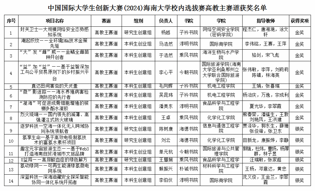 本次大赛聚焦创新意识培养和创新能力提升,有利于帮助我院学子拓宽视野、增长见识,提升策划能力和协作水平,推动万众创新的学风建设,为产学研合搭建坚实桥梁。未来,我院将继续充分发挥创新创业类比赛的重要作用,大力培养具有创新精神和实践能力的高质量拔尖人才,为国家创新驱动发展战略贡献青春智慧和力量。预祝我院优秀项目团队争取在海南省赛区中取得更加优异的成绩,展示我院学子敢闯会创的精神风貌。