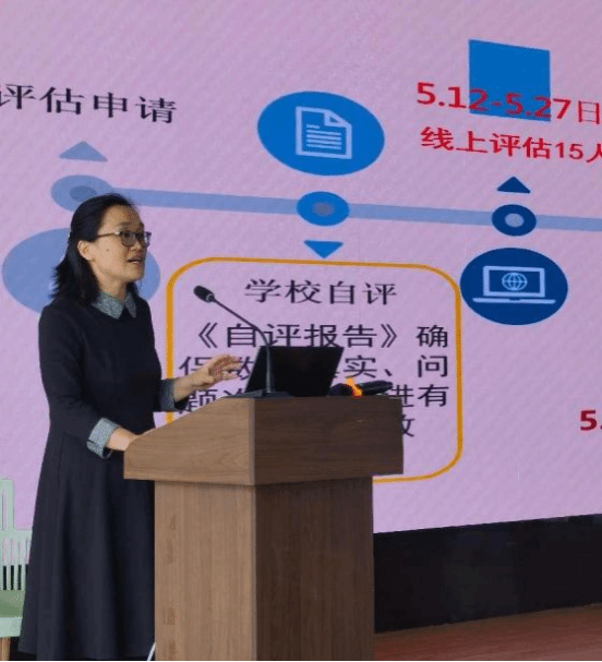 副院长陈艳丽对审核评估的具体工作进行了详细部署。首先介绍了评估工作的总体安排、时间节点和重点任务,然后对评估材料的准备、教学档案的整理、课堂教学质量的提升等方面提出了具体要求,并号召全体师生积极参与,努力形成全员参与、全员发力的良好氛围。