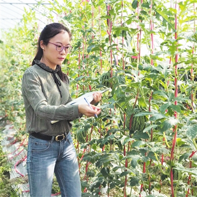 韩晓燕在田间地头研究西瓜